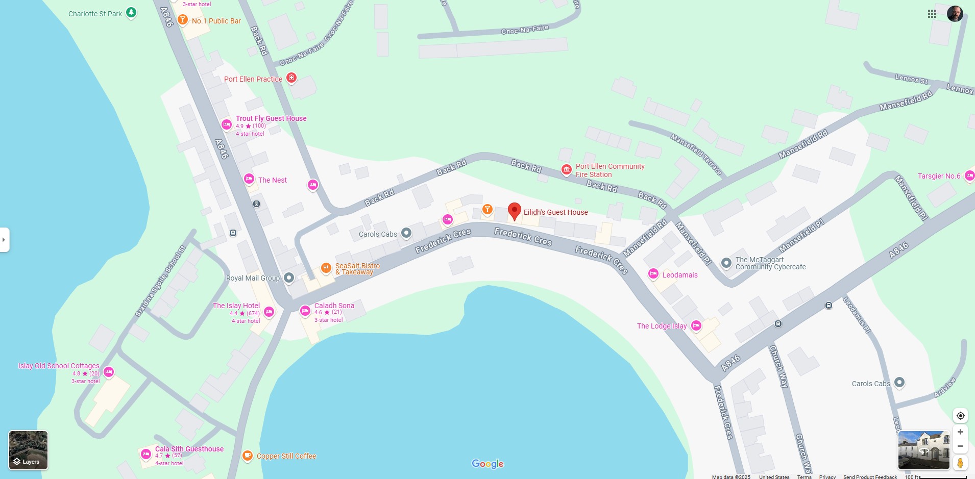 Eilidh’s Guest House is in the centre of the village of Port Ellen. We have en suite rooms with stunning views overlooking Port Ellen Bay.